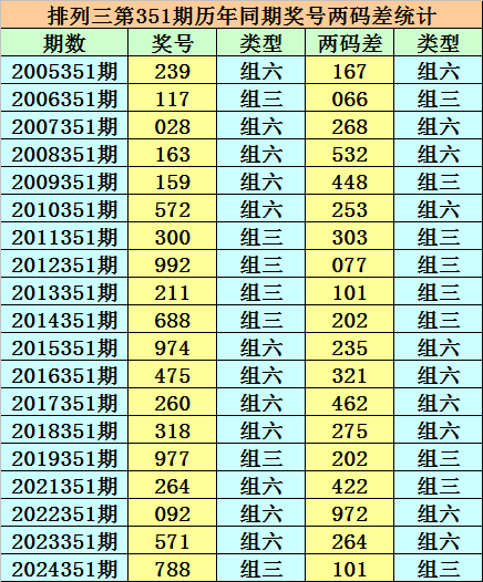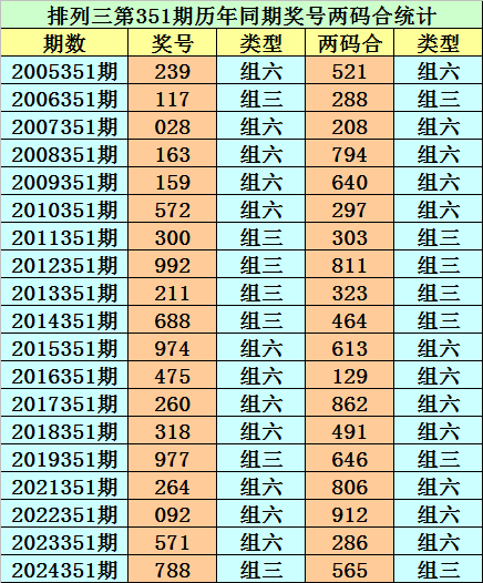 成列三从2004年开奖于今已开出7474期奖号了,其中第351期历史同时奖号出现19次,积年第351期诀别开出号码:239、117、028、163、159、572、300、992、211、688、974、475、260、318、977、264、092、571、788。